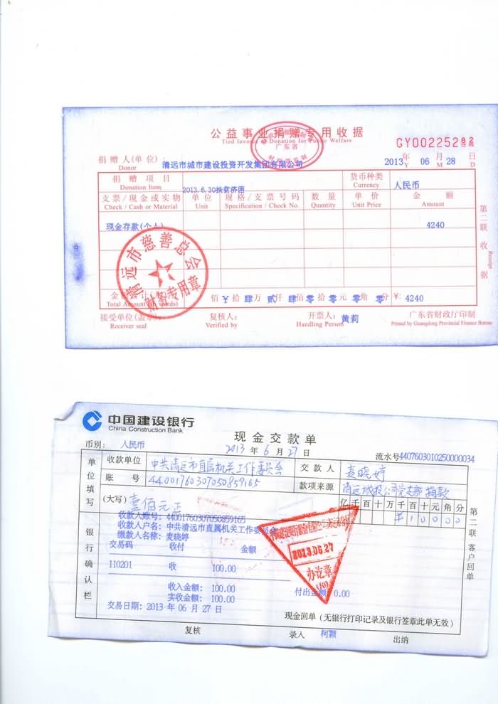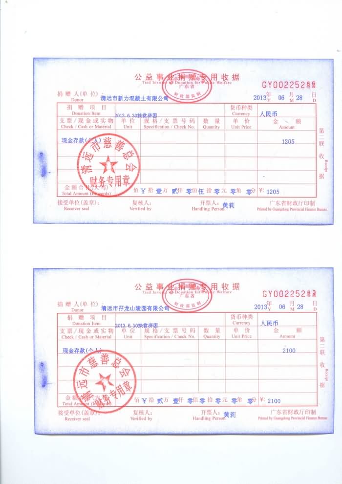 清远城际轨道实业有限公司、清远市广清城际轨道有限公司募捐金额:1300元。