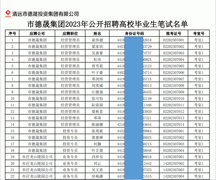 清远市3044永利集团投资集团有限公司2023年公开招聘高校毕业生笔试/实操安排通知