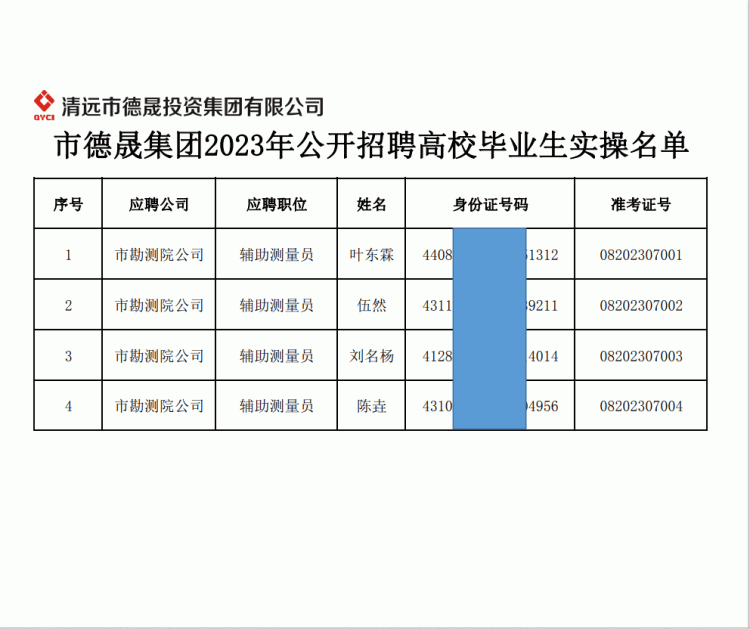 清远市3044永利集团投资集团有限公司2023年公开招聘高校毕业生报名已结束,通过对应聘人员报名资料的审核、筛选,公司确定了符合笔试/实操资格的人员名单,现将笔试/实操有关事项通知如下: