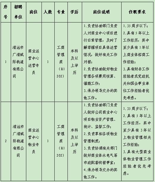 清远市广清城际轨道有限公司2024年公开招聘两名劳务派遣工作人员的公告