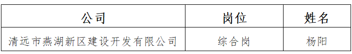 公示期满,通过公示的人员由劳务公司按照有关规定与其签订劳动合同并派遣至清远市燕湖新区建设开发有限公司工作。
