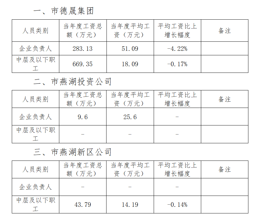根据《清远市国资委关于改革出资监管国有企业工资决定机制的实施办法》(清国资〔201〕233号)规定,现将市3044永利集团集团及市燕湖投资公司、市燕湖新区公司2022年度工资分配信息披露如下: